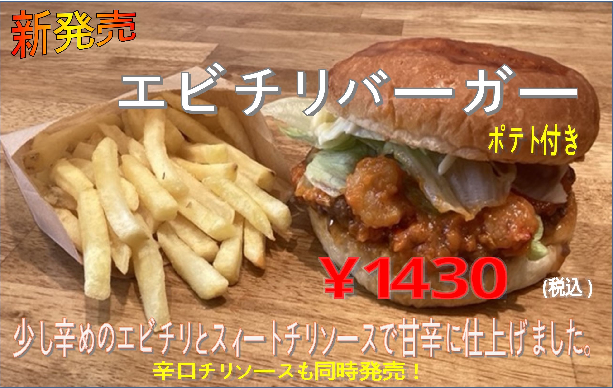 - スィートチリソースとエビチリの辛さで体ぽかぽか。エビチリバーガー新発売!もっと辛めのチリソースバージョンも同時新発売!